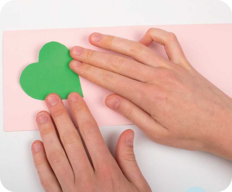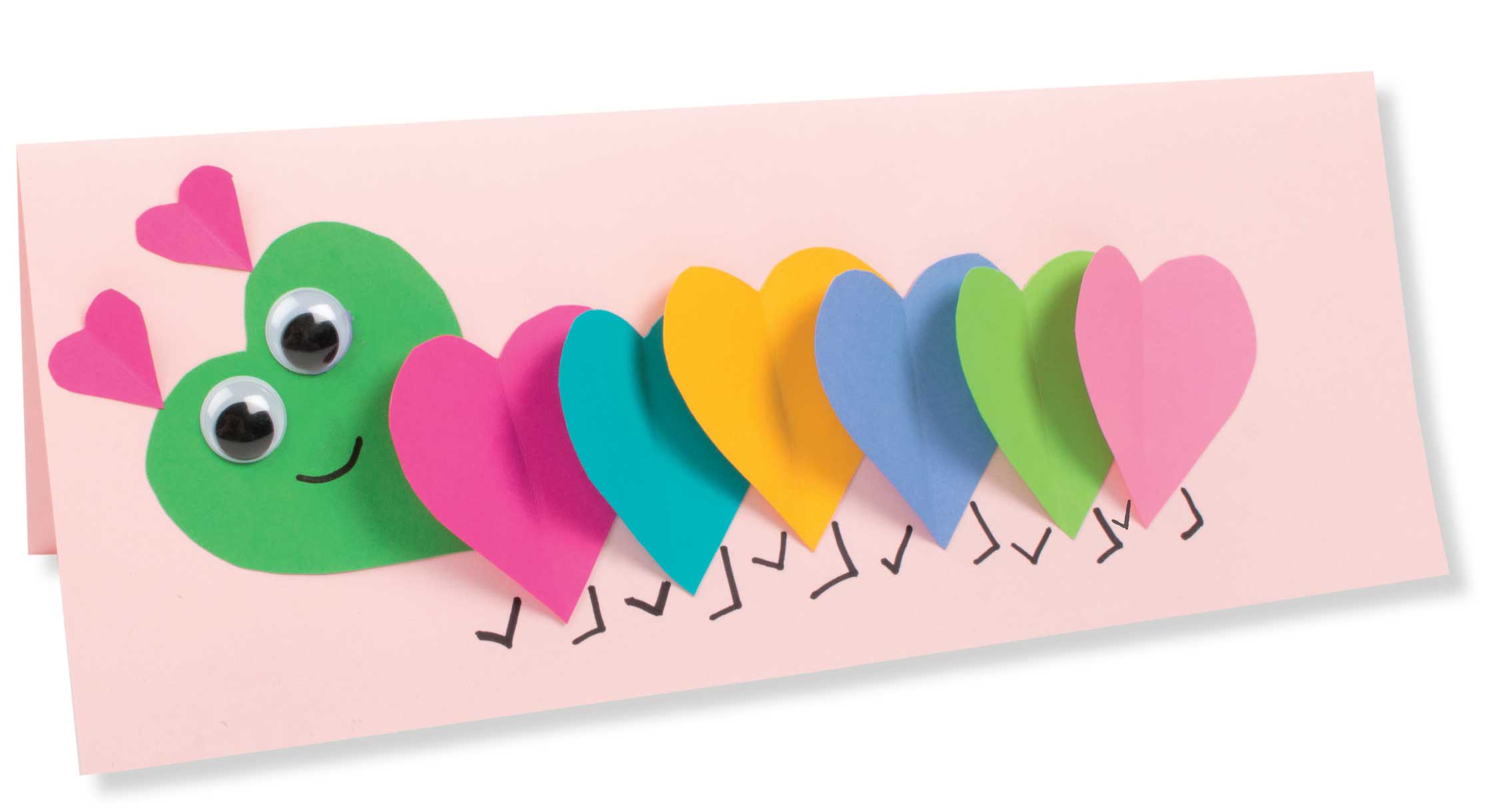 2. Trace the heart on five different colors of card stock. Cut out the hearts. These will form the bug’s body.