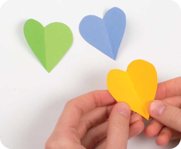 5. Fold all of the hearts in half down their centers. Open them back up.