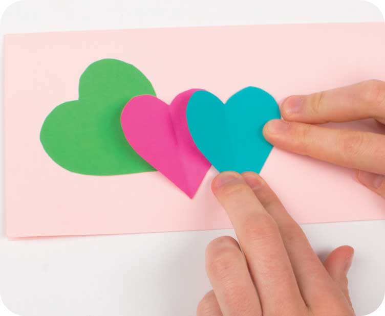 9. Glue down the right half of another body heart next to the first heart. Let the left half of the new heart overlap the first heart.