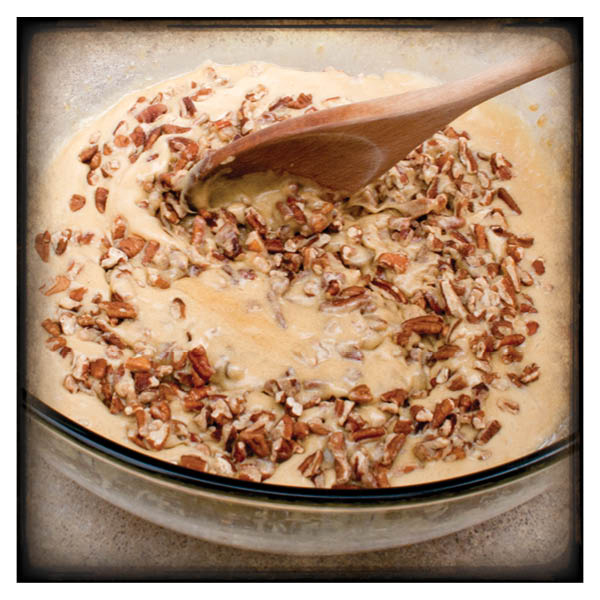6. Add the pecans. Gently stir them into the mixture.