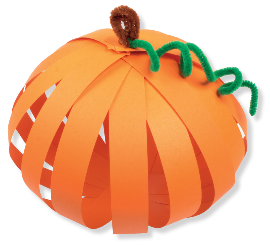 6. Make a pumpkin stem and vine with the chenille stems. Wrap their ends around the top paper fastener.