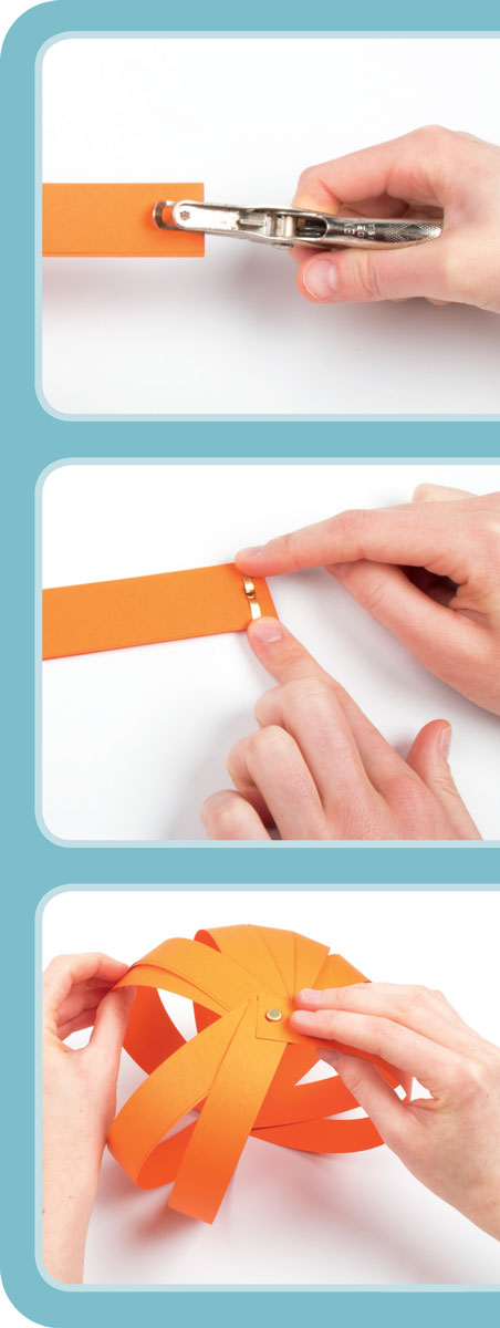 1. Cut the orange paper lengthwise into 15 strips. Make each strip 1 inch (2.5 cm) wide.